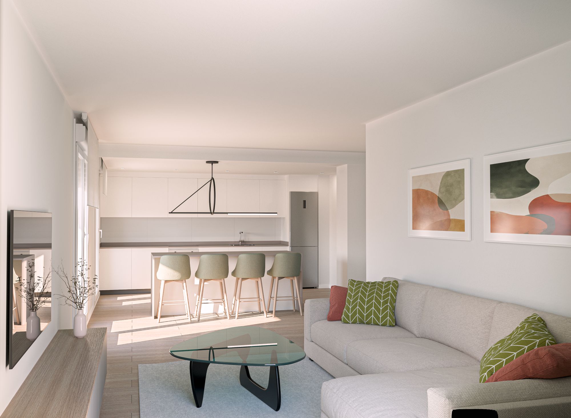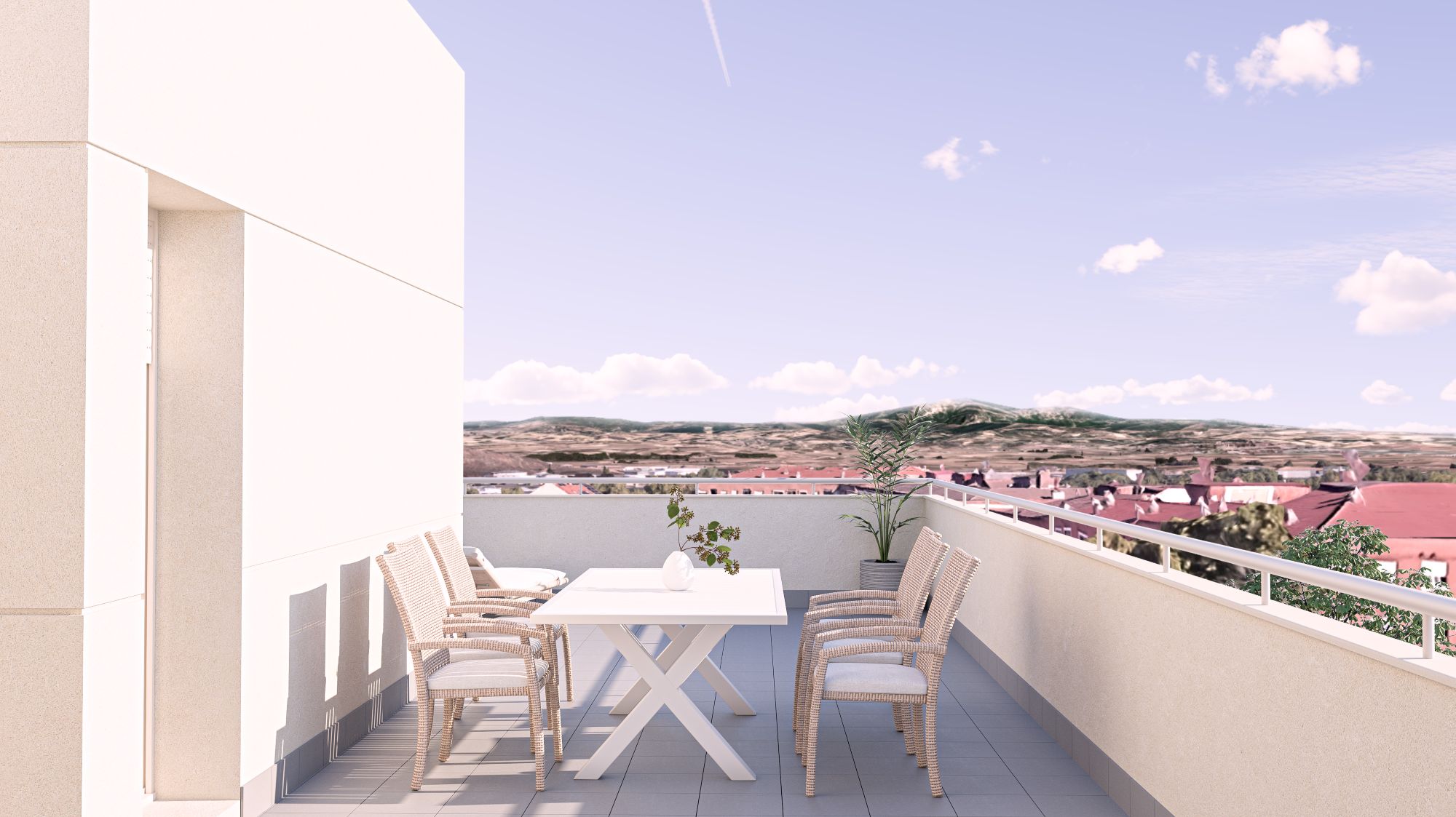 Los cerramientos se plantean mediante un Sistema de Aislamiento Térmico Exterior, SATE, aplicado sobre cerramiento de ladrillo cerámico. Se contemplan las soluciones constructivas que garanticen las condiciones de confort climático necesario en las viviendas. La climatización será con calefacción individual por medio de aerotermia y suelo radiante.
